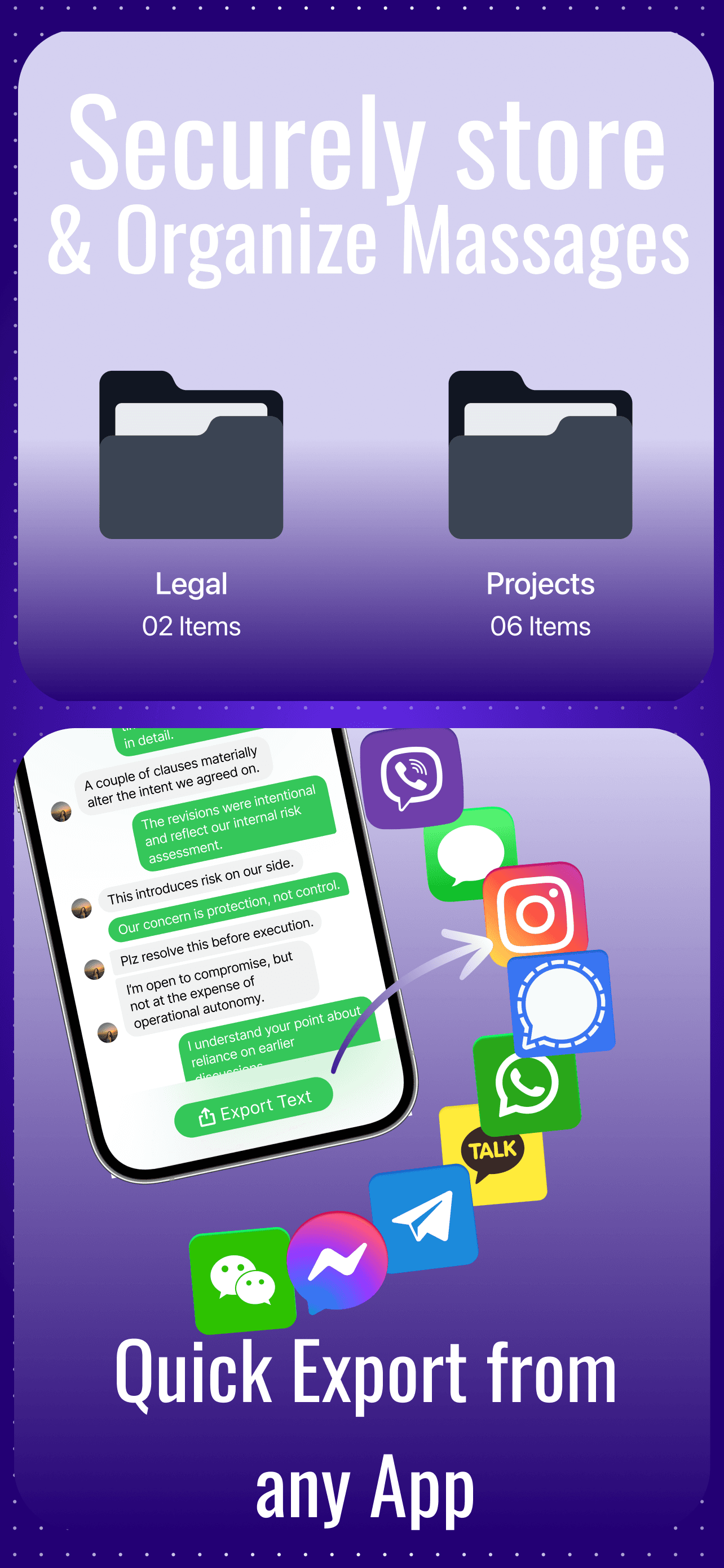 Export and organize conversations in seconds. Create reliable records for business, legal, and professional use